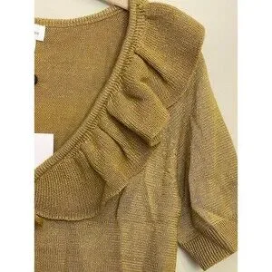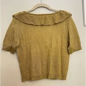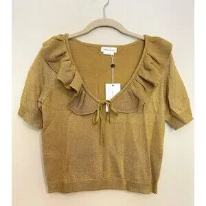 Lovers + Friends Blouse Ivy Crop Top Ruffle Trim Mustard Gold Size Small