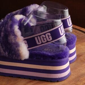 UGG Slippers WMS SZ 6.5-7 Purple Disco Marble Slide Platform Cozy Slingback Shoe