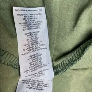 - 57% Cotton, 38% Polyester, 5% Elastane