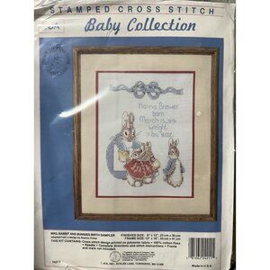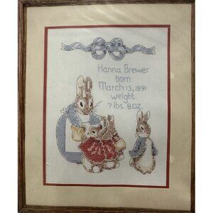 JCA Cross Stitch 04211 Kit Mrs. Rabbit and Bunnies Birth Sampler/ Birth Recorder Kit 1991