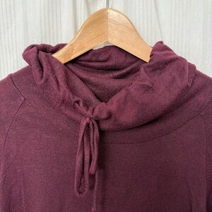 🌿This features a lose cowl neckline that can be tied tighter to form more of a turtleneck look. Size small. Very pretty heathered maroon color. Long sleeve. Light sweater material so this would be great layered on a cool summer night.