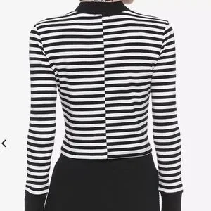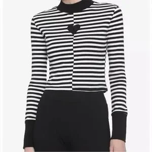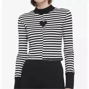 HOT TOPIC Black & White Stripe Heart Mock Heart Front Long-Sleeve Top X