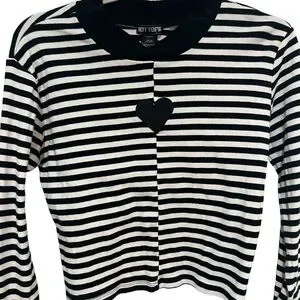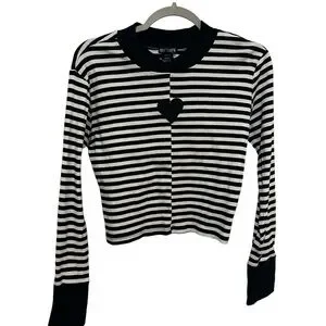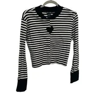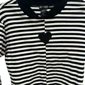 HOT TOPIC Black & White Stripe Heart Mock Heart Front Long-Sleeve Top Xl