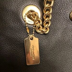 COACH 57107 Turnlock Chain Pebbled Black Leather Tote Shoulder Bag EXCELLENT