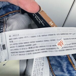 Abercrombie & Fitch the loose high rise jean in a medium blue classic denim wash. Straight leg full length. Cotton blend with some stretch. Curve love fit.