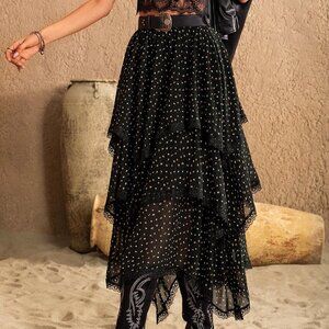 Black Casual Women's Polka-Dot Asymmetric Skirt