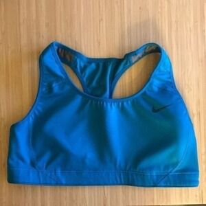 Keywords: Nike, sports bra, DRI-FIT, blue, small, S, activewear, workout, gym, running, yoga, fitness, racerback, athletic, performance