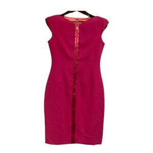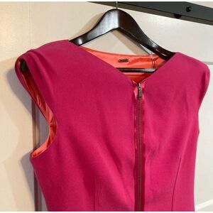 This beautiful Elie Tahari dress in size 8 is perfect for any occasion. The dress features a solid pattern with a sleeveless design and a V-neckline. It has a front metal zipper for closure and is made of a combination of polyester, triacetate, and elastane materials. The dress is lined with orange material and has accents of zipper closure. It falls to knee length and is suitable for summer, fall, and spring seasons. This sheath style dress is perfect.