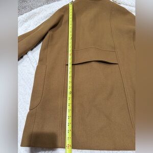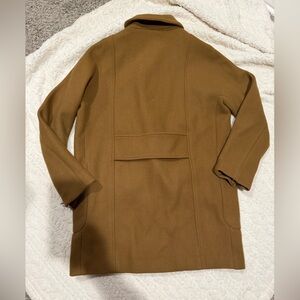 Elevate your winter wardrobe with this stylish double-breasted coat from Madewell, crafted from a luxurious wool blend. Featuring a sleek, tailored silhouette, this coat offers both warmth and sophistication. Its camel color complements any outfit, while the two front pockets add practicality. The coat is designed for a comfortable fit, making it perfect for layering over sweaters or dresses. Whether you're heading to the office or a casual dinner, this versatile piece will keep you looking effortlessly chic. - Made from 80% wool and 20% nylon - Classic double-breasted design - Two pockets for added convenience - Size 10, perfect for a tailored look - Ideal for fall and winter fashion. DESCRIPTION: Used in excellent condition. Any defects will be shown in the photos. Please review all images; what you see is what you will receive.