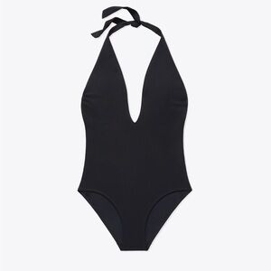 TORY BURCH solid Tie Halter One-Piece Swimsuit UPF L NWT plunge