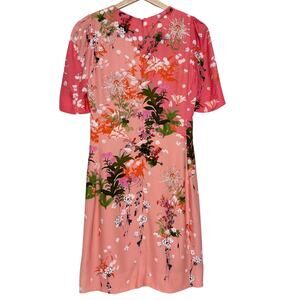 Givenchy Floral Short Sleeve Shift Dress Romantic | Pink Peach Coral | SZ 4