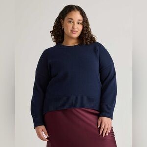 Quince Women's Large 100% Organic Cotton Boyfriend Crew Neck Sweater Black Knit