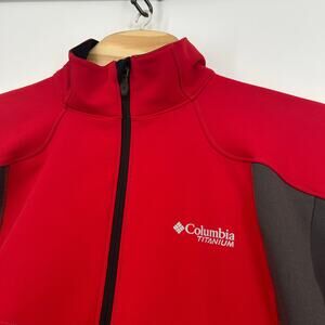 Men's Red Grey Columbia Titanium Omni-Heat Softshell Full Zip Jacket Size Small