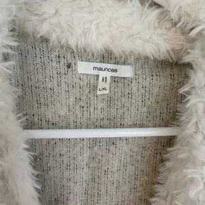 Maurices Cream and Gray Faux Fur Vest