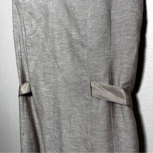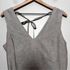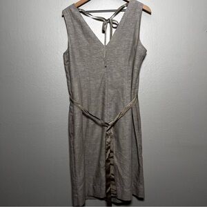 Banana Republic Women Linen Dress 12 Tan Gray Sheath Preppy Summer V-Neck Cotton Tie Back Neck