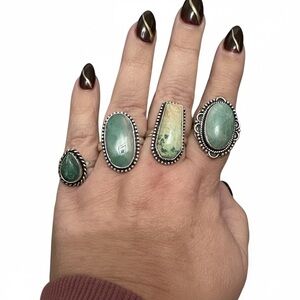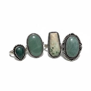 BUNDLE INCLUDES 4 RINGS SIZES 9-10 AL WITH REAL STONES AMD 925 STERLING OVERLAY, 3 HANDMADE STRETCH BRACELETS, HANDMADE BEADED NECKLACE