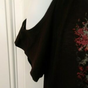 Inspire cold shoulder maternity top with decorative ring on shoulder, and graphic front.