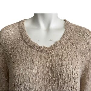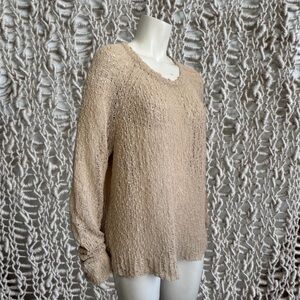 Eileen Fisher Organic Cotton Sweater | Neutral Oatmeal | Open Knit | Women Large