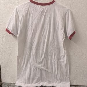 Classic Tultex tee. White fabric with red trim. Comfortable and stylish.in good condition. size small 100%cotton