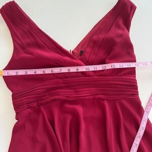 burgundy dress, vneck, ruched, chiffon, asymmetrical hem, cocktail, party, evening, formal, elegant, sleeveless, fit and flare, special occasion