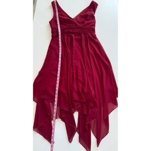 EVER PRETTY Chiffon Burgundy Ruched Waist Pixie Asymmetric Hem Dress 8 Faerie