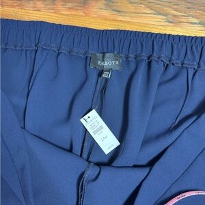 Talbots Women Ponte Cropped Wide Leg Pant Navy Pull-On Elastic Waist Trouser 24W