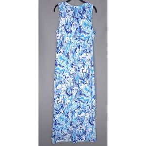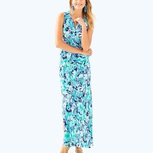 Lilly Pulitzer Essie Maxi Dress MEDIUM Tropical Turquoise Floral Elephant 28847
