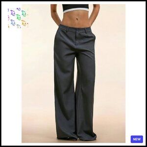 Low Rise Wide Leg Trousers Elegant Business Casual Work Slacks Chic Minimal