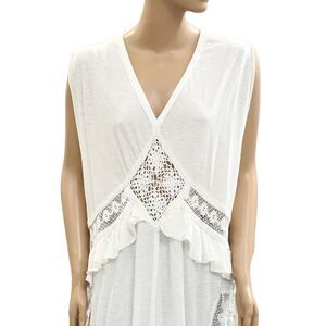 Free People Willow Maxi Top Cochet Lace Ruffle Cotton Jersey Ivory L NWT 285112