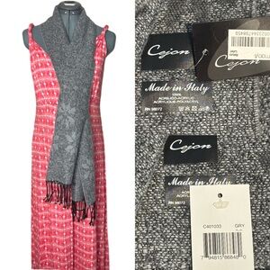 NWT Cejon Women's Gray Scarf Snowflake Pattern Heather Gray w/ fringe wrap scarf