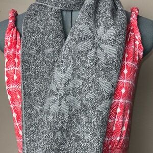 NWT cejon Elegant Gray Patterned Scarf, Women's/Unisex one size fringe tassels heather gray with simple snowflake pattern