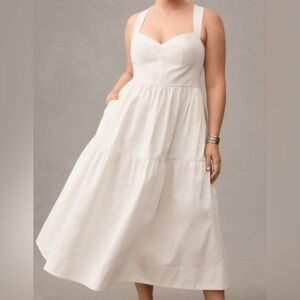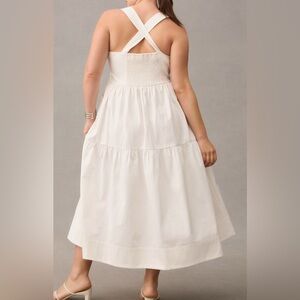 Anthropologie White Tiered Cotton Midi Dress with Sweetheart Neckline