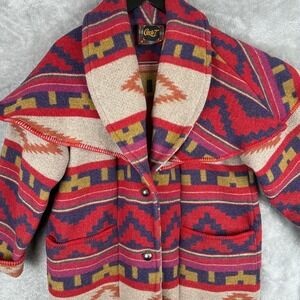 Vintage Circle T Blanket Coat Wool Blend Multi Southwestern Aztec Shawl Women S