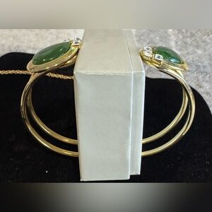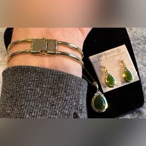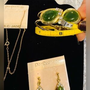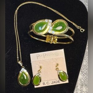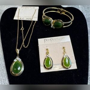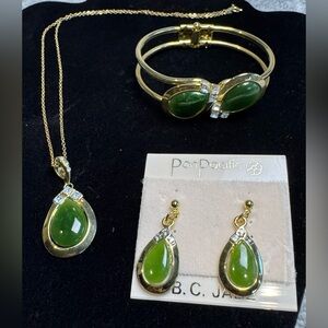 Authentic B.C. Jade Set of Gold Tone Earrings Necklace & Bracelet