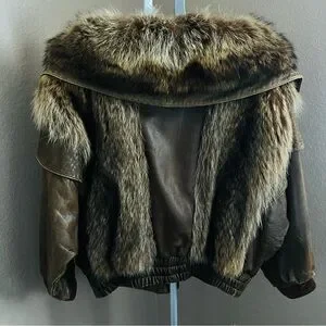 Rare Authentic Vintage Raccoon Fur Leather Bomber Made in the USA