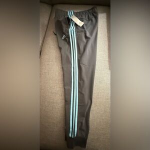 ADIDAS TRACK JOGGERS GREY WITH TURQUOISE TRIPLE STRIPE