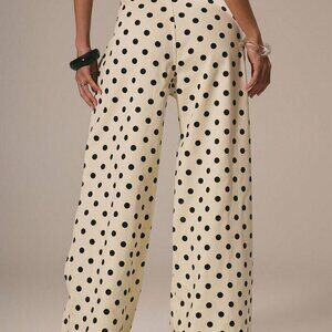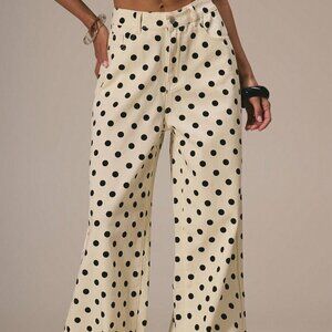 Beige Casual Women's Dainty Polka Dot Denim Straight Leg Mid Rise pants
