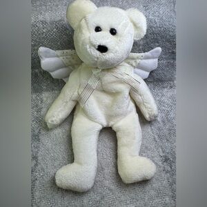 Ty Beanie Babies Herald The Angel Bear. Crafted with a white plush body, angel wings, and a gentle adorable face, this bear is a great way to spread love and cheer! Approx 8.5” Ty Tag removed but included, see photos. Very good condition, has been stored away for its life.