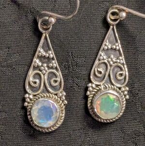 Artisan Genuine Natural Opal Earrings Solid 925 Sterling Silver Earrings