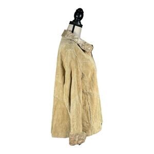 Vintage Massini Suede Leather Jacket With Faux Fur Lining And Trim in a size XL. Has a full front zip front. Exposed whip stitching. Two front pockets. Faux fur cuffs, collar, and lining. Shell genuine leather. Lining 100% acrylic. Measures approximately 22” armpit to armpit, and 27” in length. In gray condition.