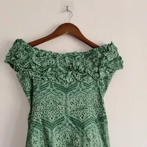 agua bendita jardin floral mini dress | off-shoulder, ruffled - green