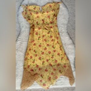 ੈ✩‧₊˚vintage yellow floral print asymmetrical hem dress ੈ✩‧₊˚
