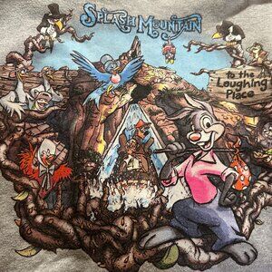 Splash Mountain Song of the South Uncle Remus Br'er Rabbit Men's Gray Sweater Medium Disney Parks Hanes Cotton Polyester Br'er Fox Br'er Bear Br'er Frog Mr. Bluebird Sweatshirt