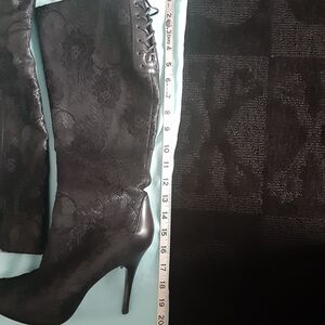 Marciano lace zip up boots. Knee Length. Approx 4" heel. Size 8.5. Pre-loved but still in excellent condition! Comes in box with dust bag.