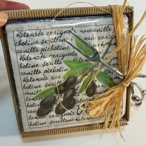 Elevate your table setting with this charming Mud Pie Olive Napkin Holder Set. This unique piece beautifully combines rustic charm with elegant design, featuring a silver olive branch motif that adds a touch of nature's artistry to any meal. The accompanying olive fork server is perfect for adding a delightful finishing touch when serving appetizers or charcuterie. Imagine this set gracing your table during a cozy family dinner, a festive holiday gathering, or a relaxed outdoor brunch.