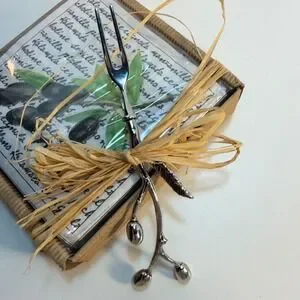 Mud Pie Olive Napkin Set Silver Olive Branch Fork Server Rustic Party Dinner NEW