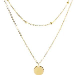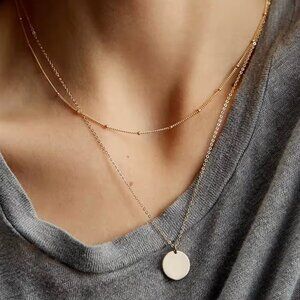 Turn heads with this 14K gold filled pendent layering necklace with chain detailing
