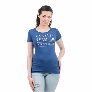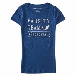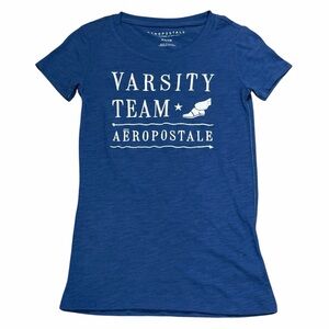 Aeropostale Blue & White VARSITY TEAM Graphic Tee - Size XS. Excellent condition! Measurements are shown in the 11th - 15th photos.