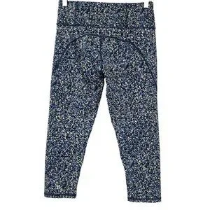Sweaty Betty Power 7/8 Leggings Blue & Yellow Speckled Print High Waisted High Rise Sweat Wicking Quick Dry Bum Sculpting Hidden Zipper Pocket Lightweight Breathable Stretch Women's