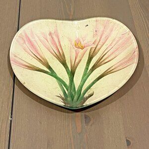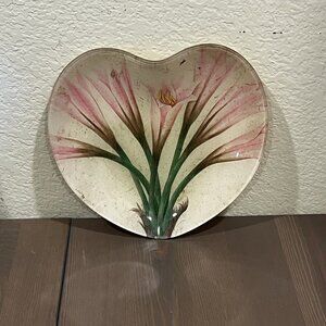 John Derian Amaryllis Plate 7.75" Heart Shaped Glass Decoupage Trinket Dish
